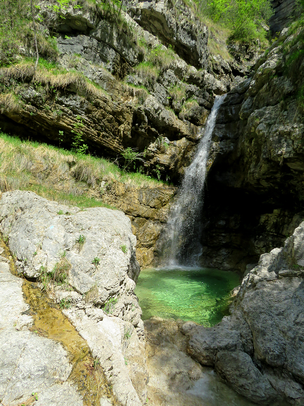 spuščala. Res sva 20 minut od izhodišča prispela k 10-metrskemu slapu, ki je