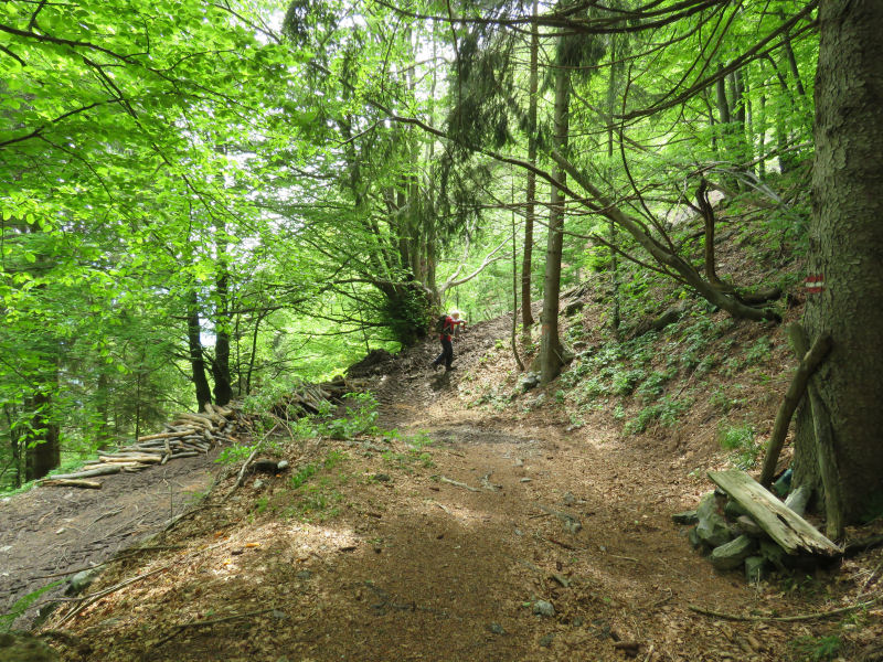 in ozki stezi smo zakoračili levo v gozd. Še enkrat smo prečkali