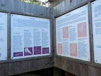 je res gneča?! Ustavila sva se pri tabli o rezervatu Lovrenška jezera. Čez slabe pol ure se je pot zravnala in postala zelo blatna. Pripeljala naju je h kažipotom (1525 m) ob prečni leseni brvi, kakršne vodijo po močvirnem svetu med jezeri, in že sva zagledala razgledni stolp. Tamkajšnje razlagalne table pripovedujejo o Lovrenškem barju, njegovem živalstvu in rastlinstvu ter Naturi 2000 na Pohorju.